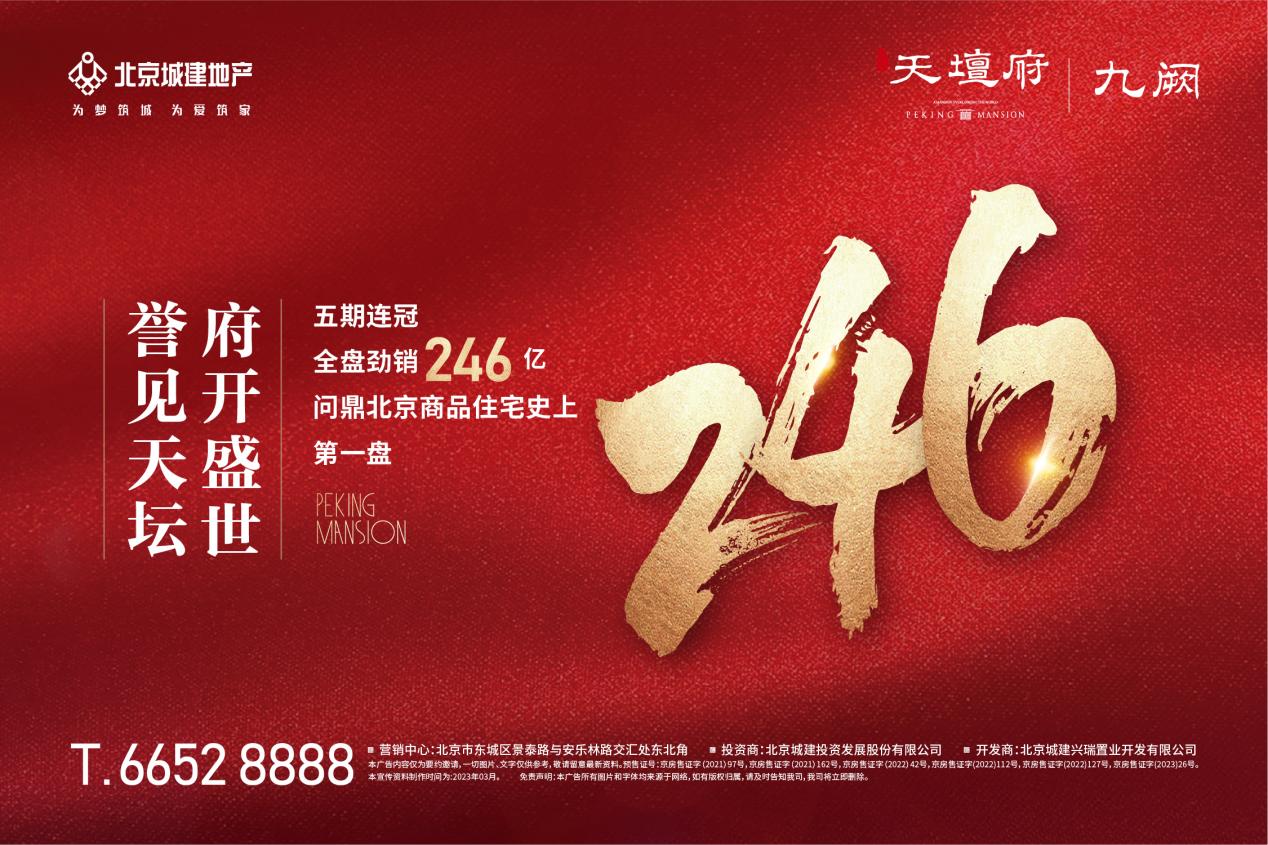 3月25日,天坛府·九阙五期以在线选房模式开盘。开盘后15分钟,房源全部售罄,销售金额高达58.75亿元,赢得一季度销售“开门红”。至此,天坛府项目五开五捷,累计实现销售额246亿元,成为北京商品住宅史上成交量第一盘。